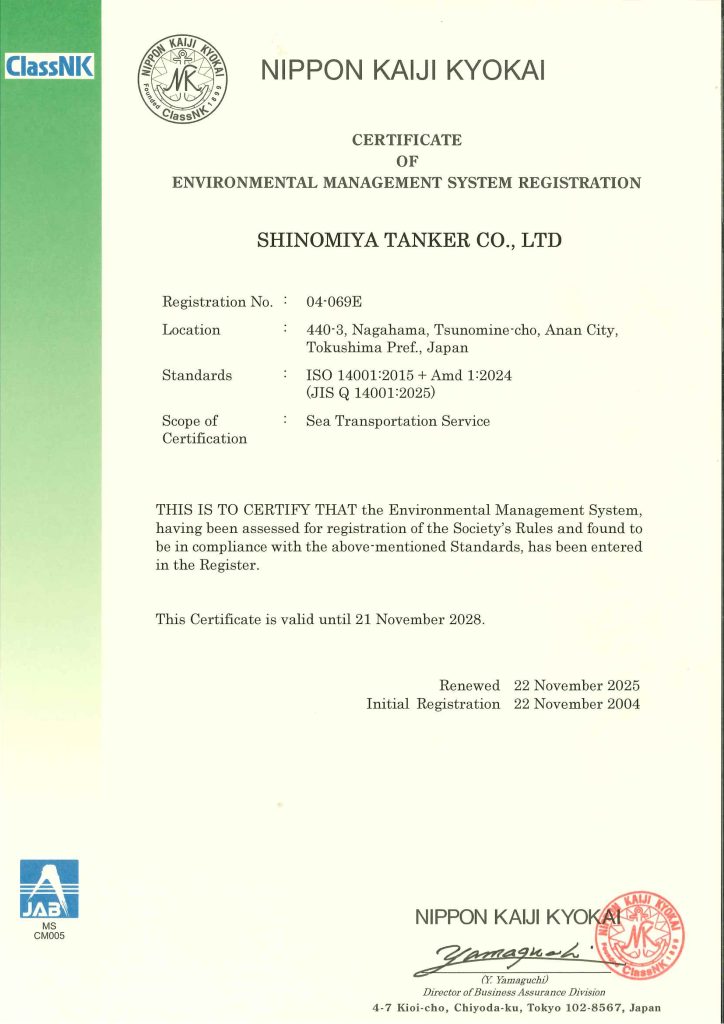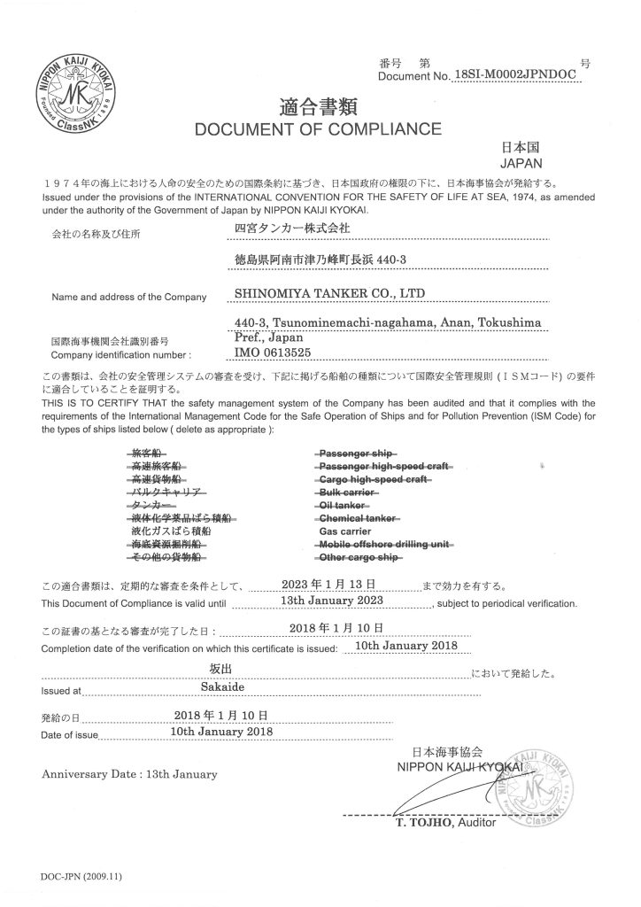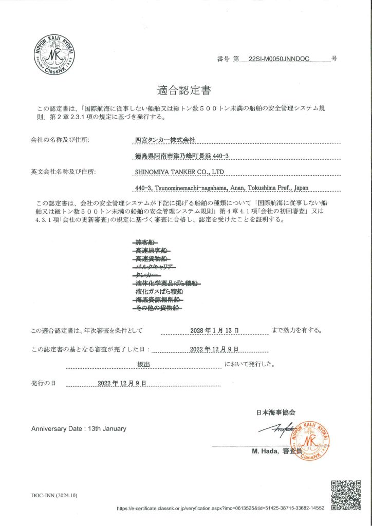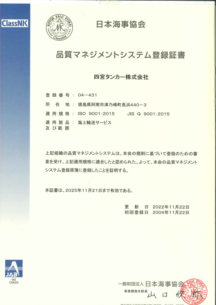 - We carry out continuing improvement and review of system (ISM, QSM, EMS,ISM) at the shore staff, the crew member and the staff of the relevant co-operate company.