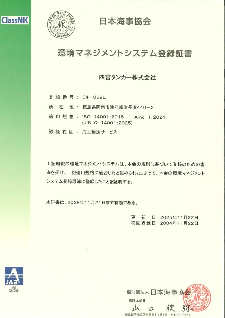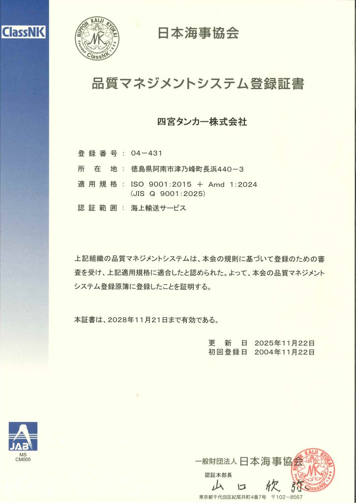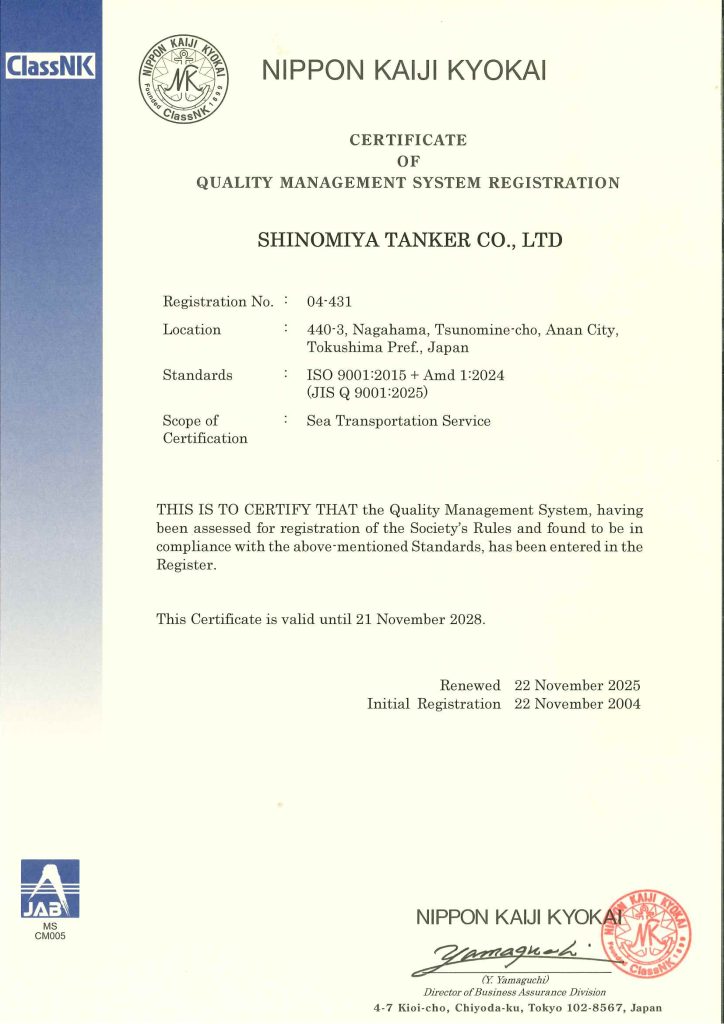 - 陸上・海上及び関連する協力会社における、品質、安全及び環境管理システム(ISMコード、品質マネージメント及び環境マネージメントシステム)の実地及び見直しによる継続的な改善を行う。